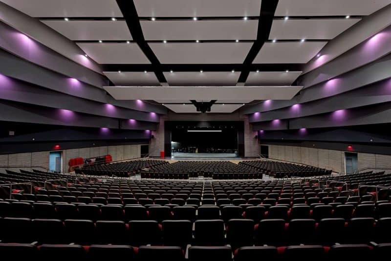 The project included the addition of a new performing arts building as well as a new indoor practice facility with artificial turf. The remodel involved a comprehensive redesign of its interior spaces. This included updated classrooms, laboratories, and collaborative learning areas that support modern teaching methods and promote active student engagement. The interior spaces have been reconfigured to facilitate flexible and adaptable learning environments that can evolve with changing educational needs.