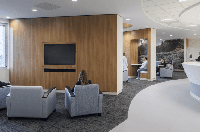 Balanced illumination that supports medical precision and circadian comfort with easy-to-clean fixtures.